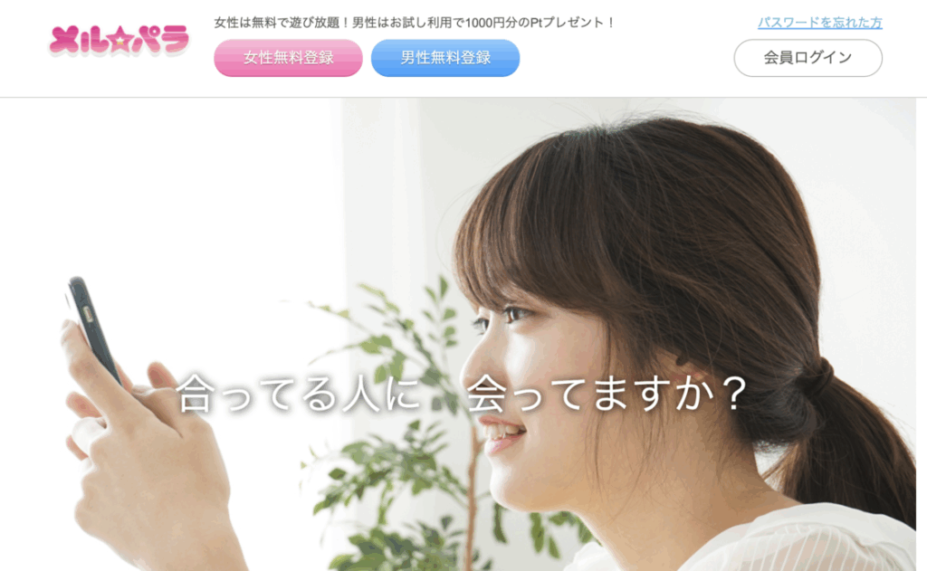 メルパラは、「自然なつながりから始まるママ活」を重視した老舗マッチングサービスです。