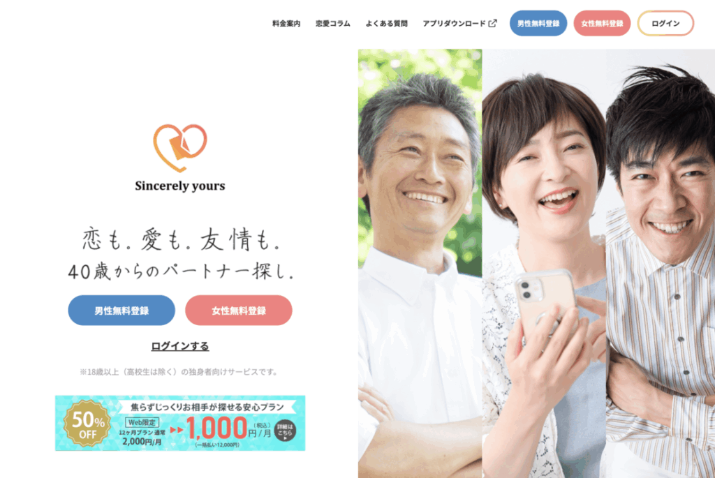 シンシアリーユアーズは、「真剣な大人の関係を築きたい人」向けに設計されたハイクラスマッチングアプリです。