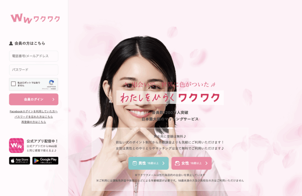 ワクワクメールは、20年以上の運営実績を誇る老舗マッチングサービスで、累計登録者数は1,000万人を超えています。