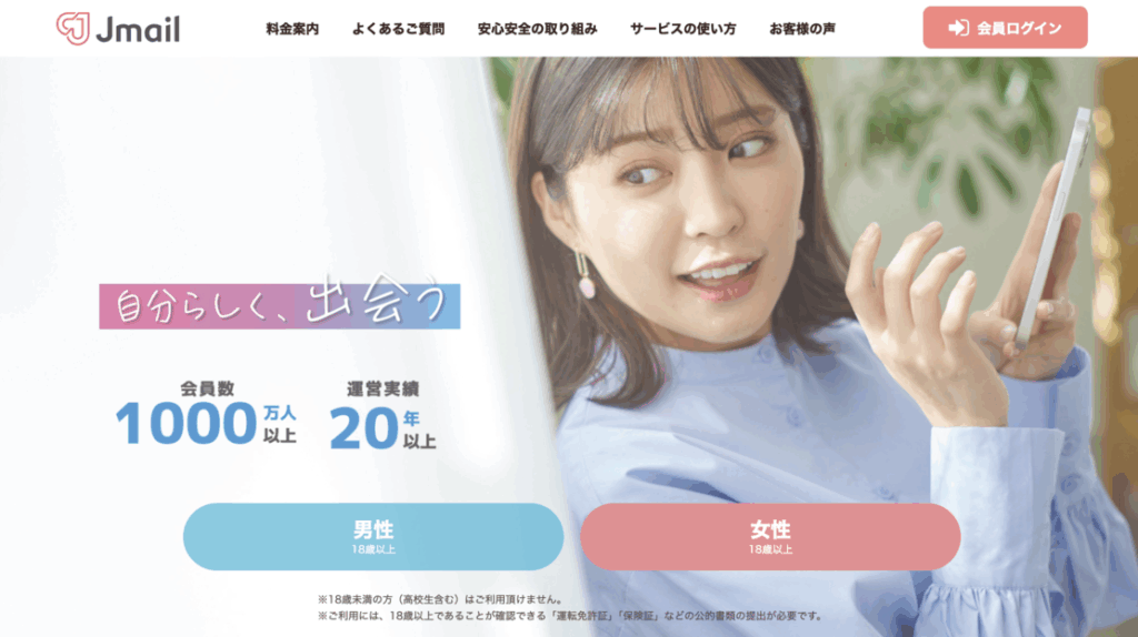 Jメールは、地方ユーザーのアクティブ率が高いことで知られる老舗マッチングサービスです。